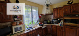 Cette maison comprend une entrée, un salon avec balcon et cheminée, une cuisine aménagée, 2 chambres, un WC, une salle de bain avec baignoire, une douche et 2 vasques .